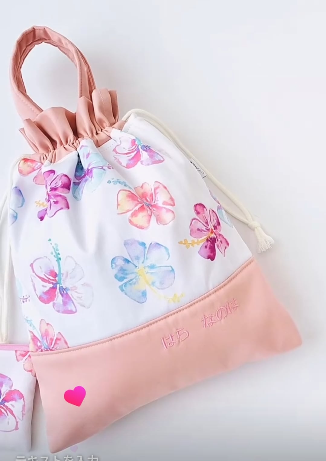 ・お着替え袋 持ち手あり 巾着タイプくちの部分はヒラヒラに 4430円